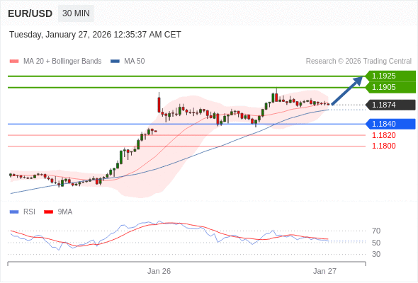 在 1.1840 之上,看涨,目标价位为 1.1905 ,然后为 1.1925 。