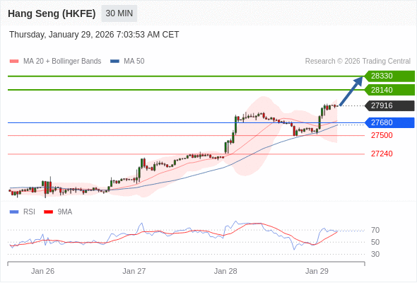在 27680 之上,看涨,目标价位为 28140 ,然后为 28330 。
