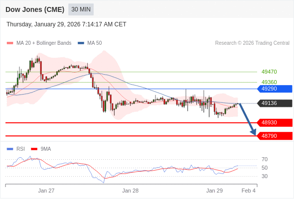 在 49290 之下,看跌,目标价位为 48930 ,然后为 48790 。