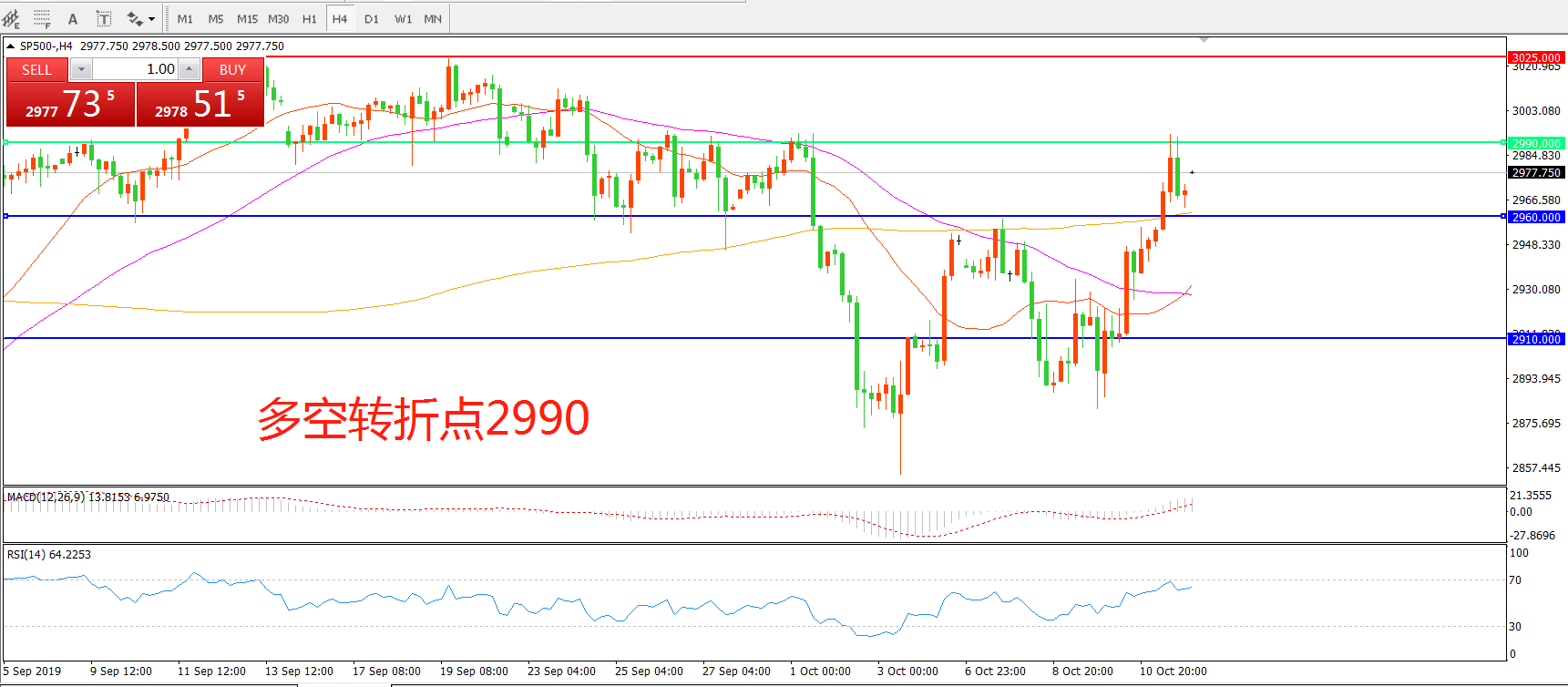 多空转折点:2990.00