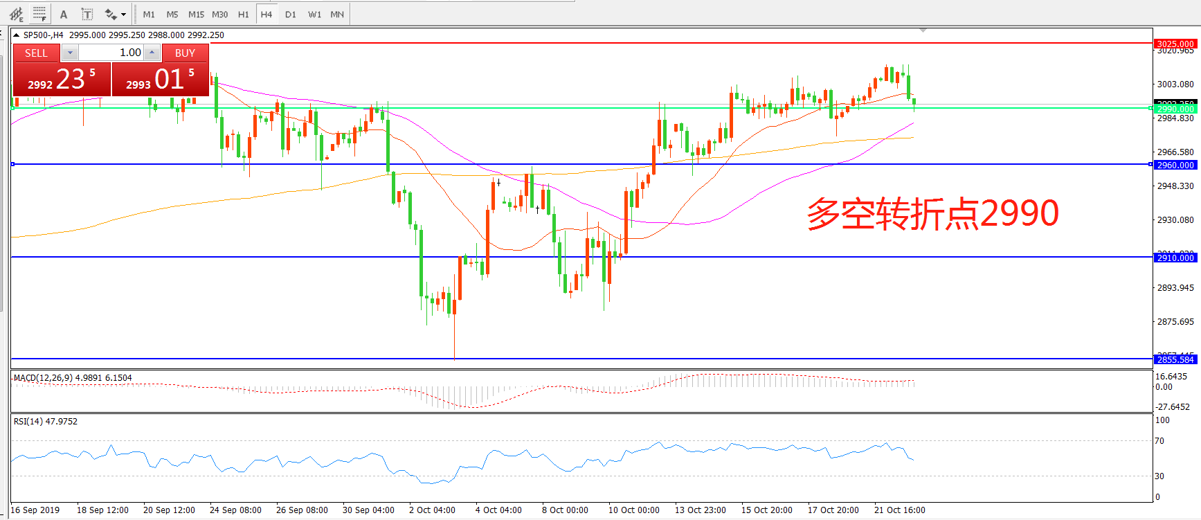 多空转折点:2990.00