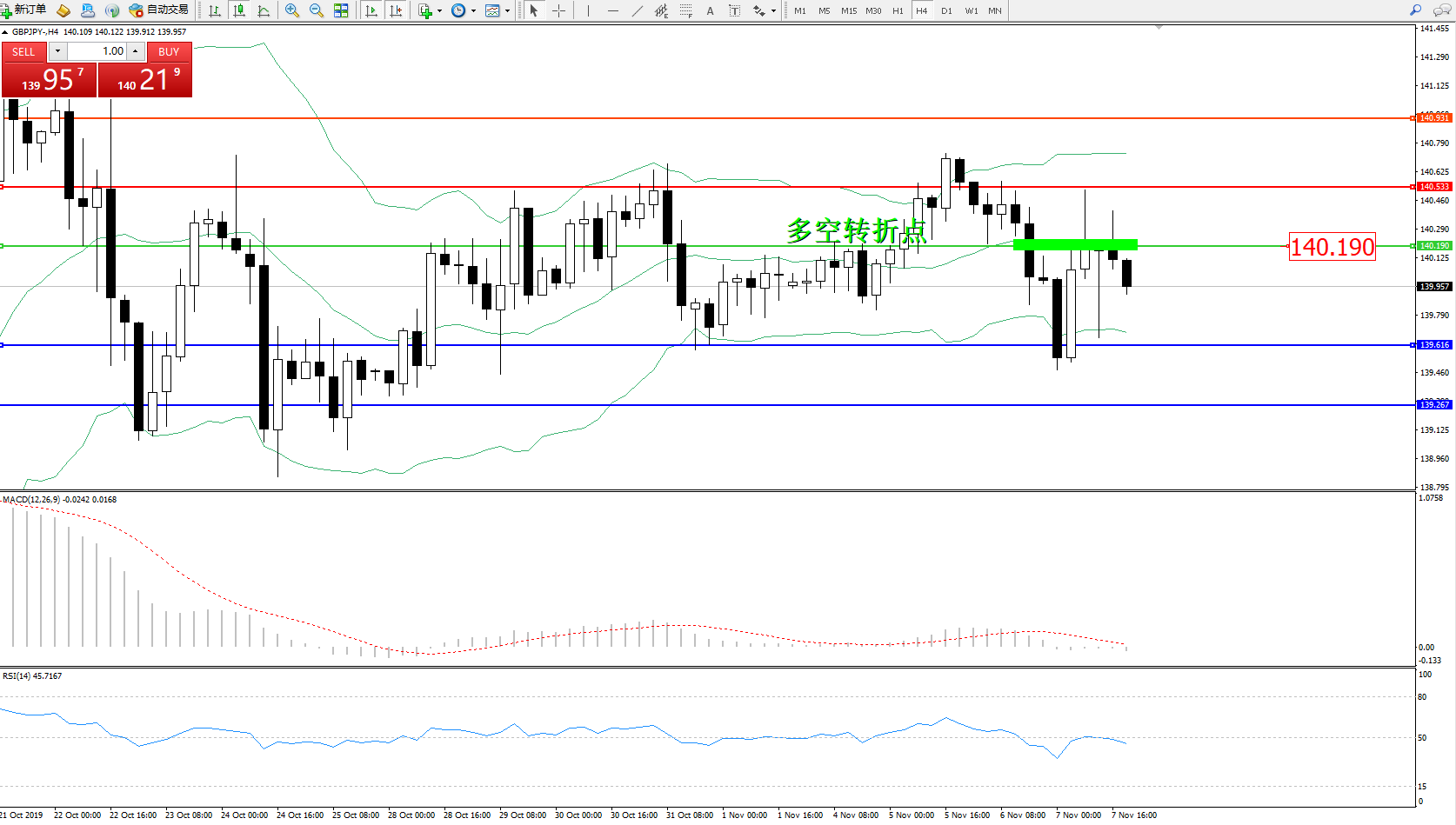 交易策略:140.190下方看跌,目标139.616、139.267