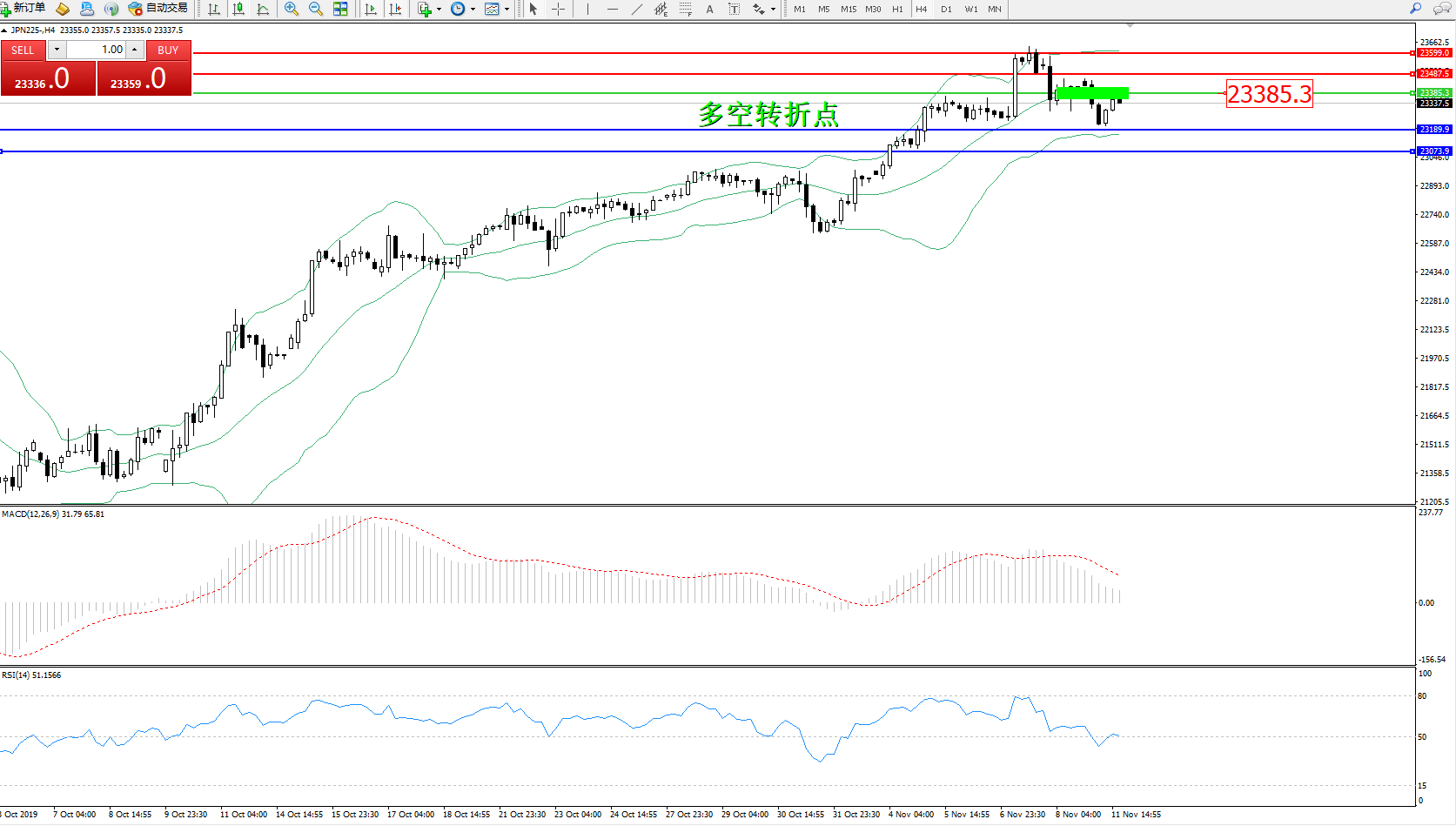 备选策略:23385上方看涨,目标23487、23599