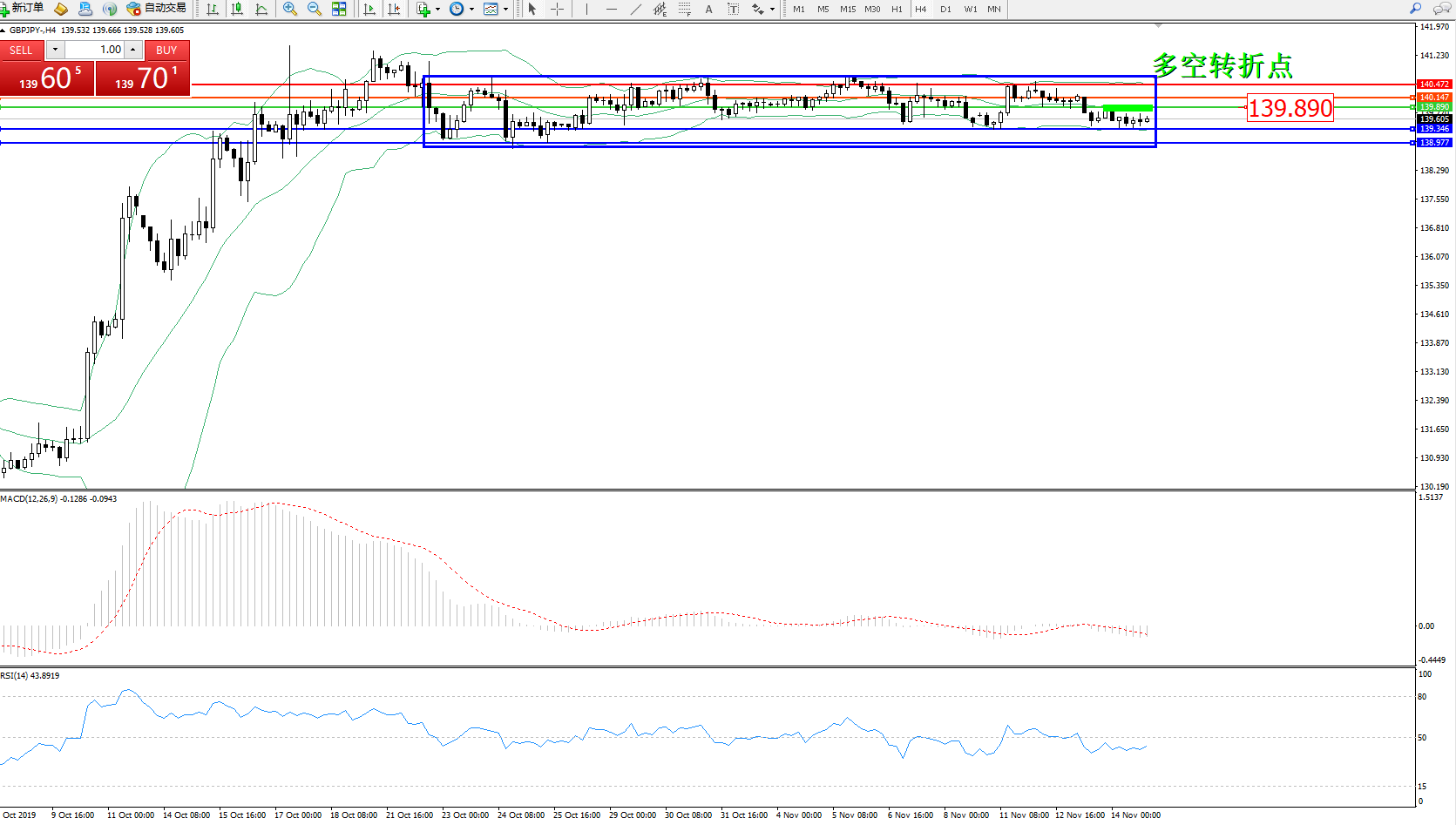 交易策略:139.890下方看跌,目标139.346、138.977