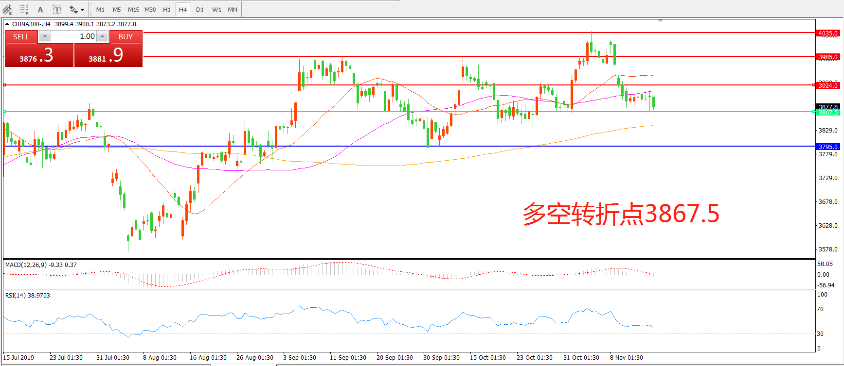 沪深300指数CHINA300 4小时图