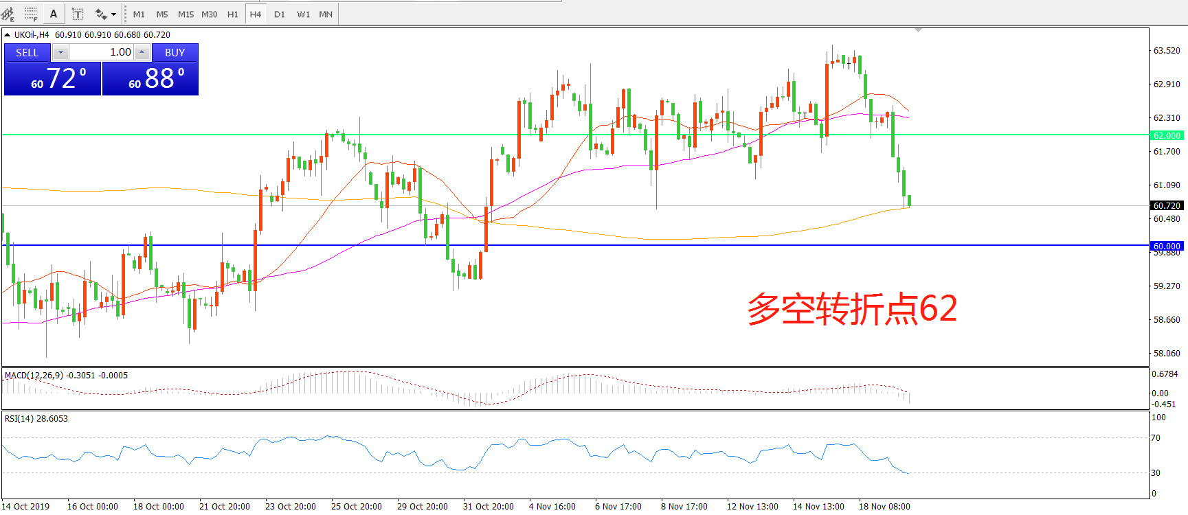多空转折点:62.00