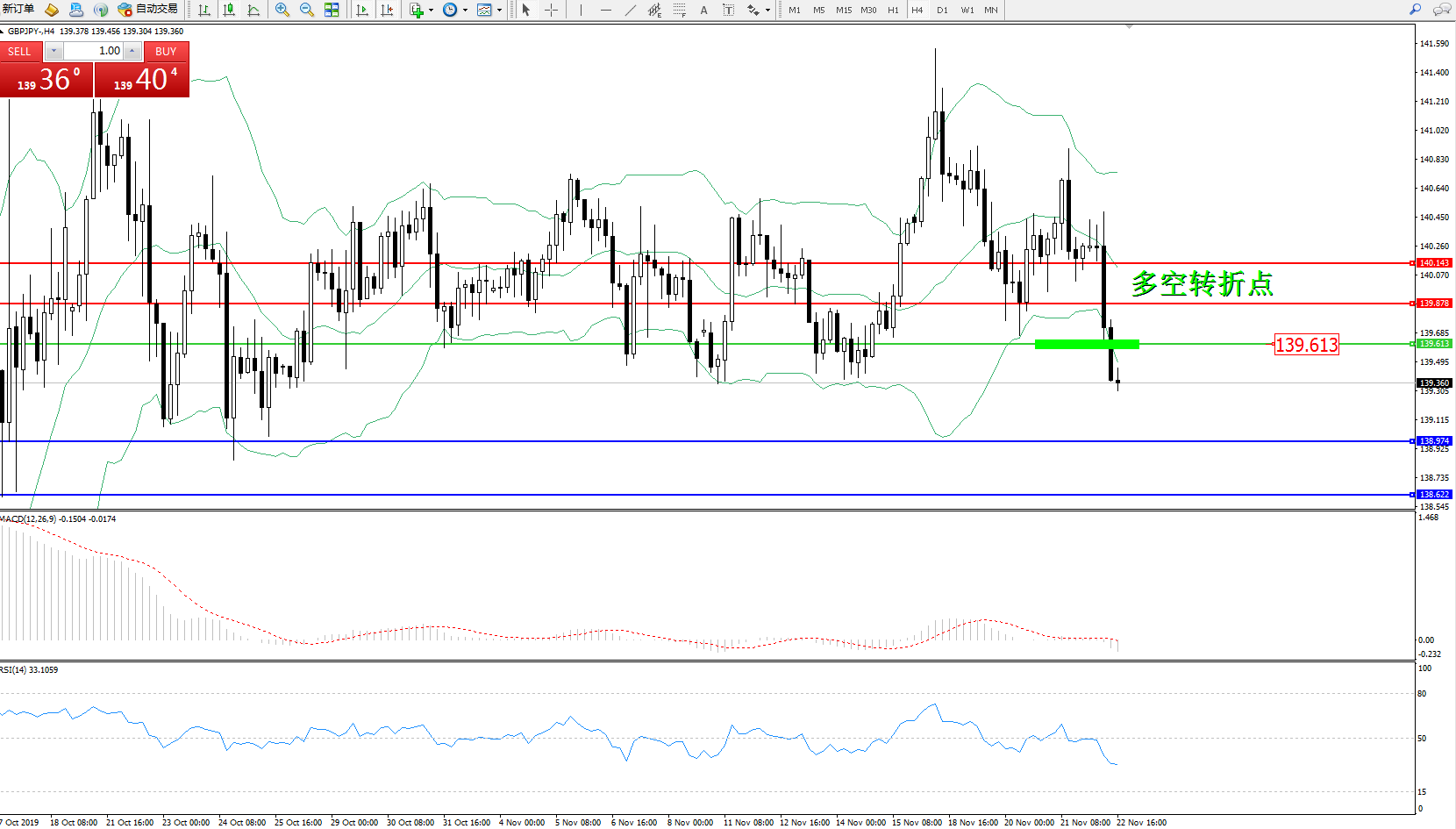 交易策略:139.613下方看跌,目标138.974138.622