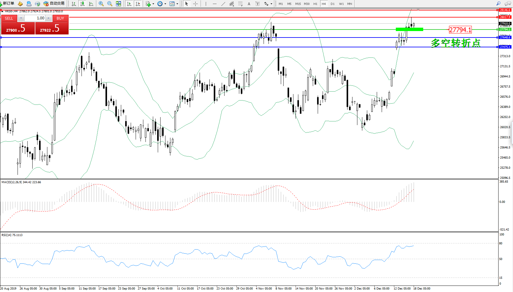 香港恒生指数1218日(周三)收盘上涨40.50点,涨幅0.15%,报27884.21点;港股跟随外围造好而高开103点,随估再扩大升幅,恒指高见27970,近28000关口前,沽压略重,亦有投资者趁高获利,以一避风险。美国最新公布的经济数据表现强势,美国11月工业产出月率及制造业反弹的幅度大于预期,对美股上扬形成支撑。同时,在A股的带动之下,港股走势也是水涨船高的态势,预示恒指仍有上行意愿。