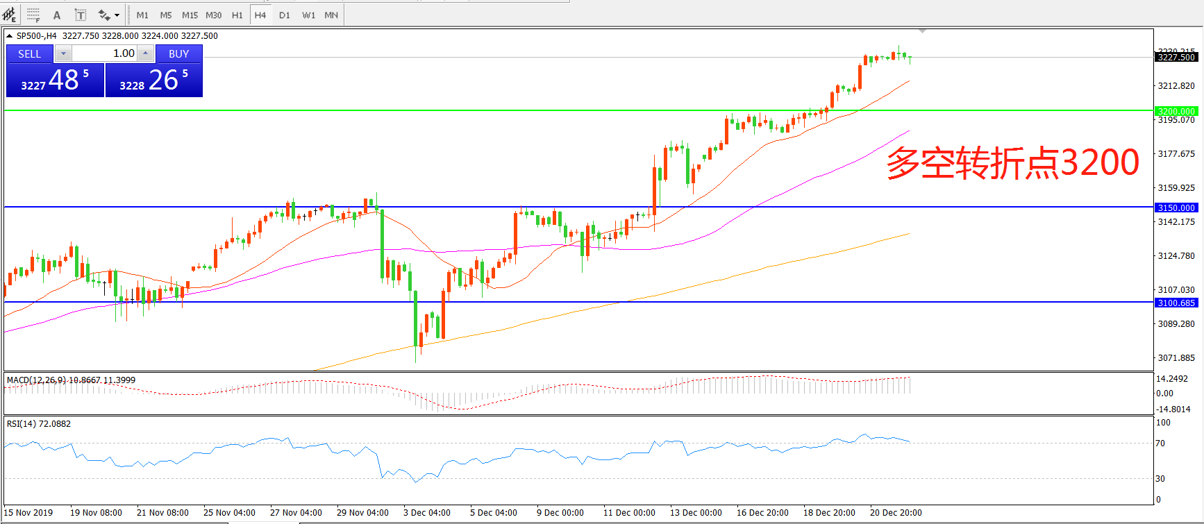 多空转折点:3200.00
