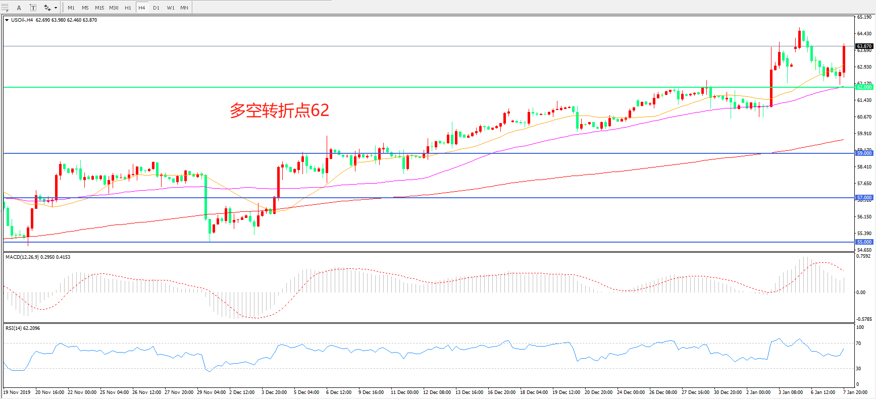 交易策略: 在62.00之上看涨,目标65.00 70.00