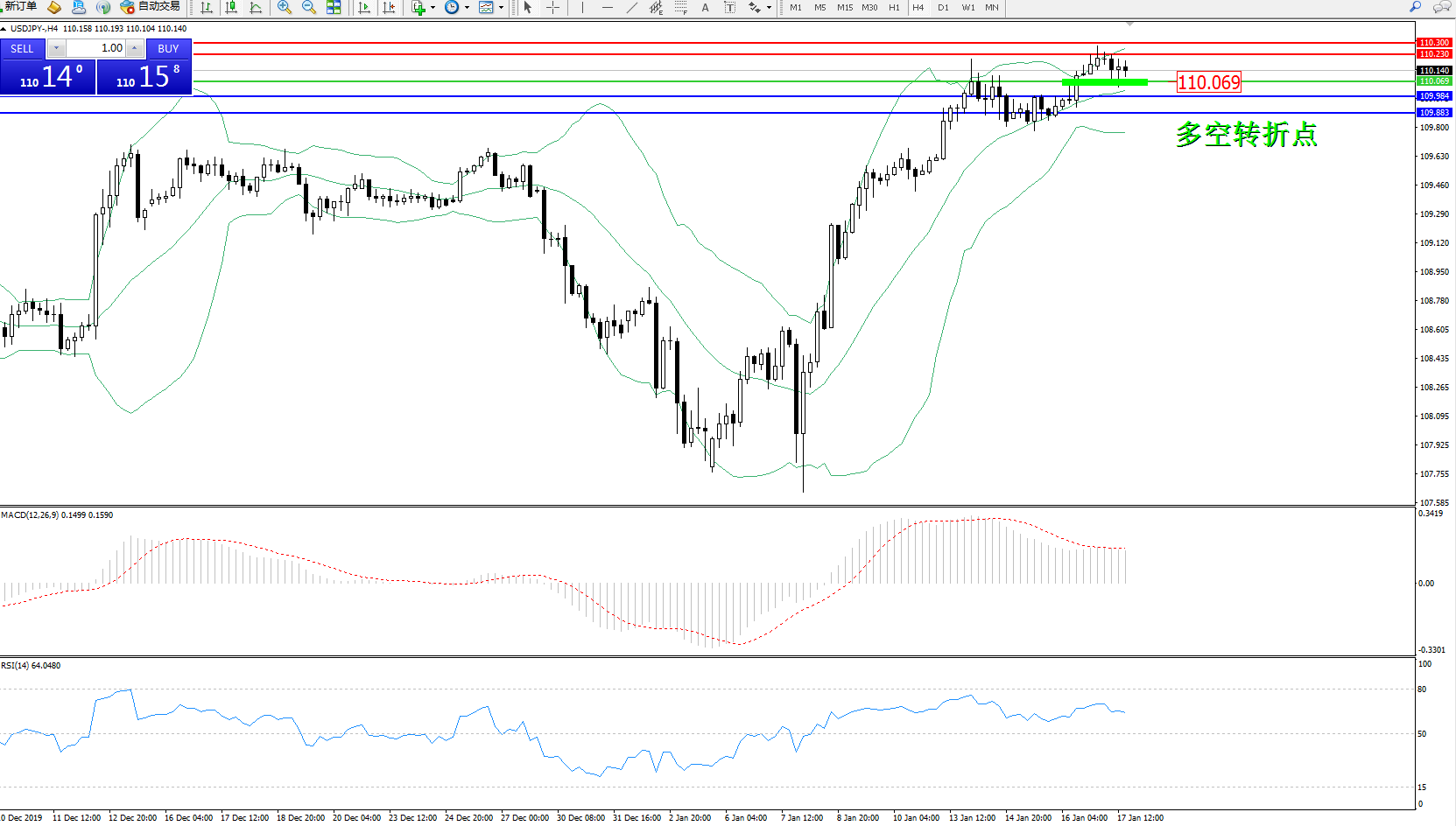 交易策略:110.069上方看涨,目标110.230、110.300