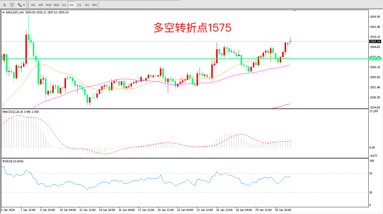 多空转折点:1575.00