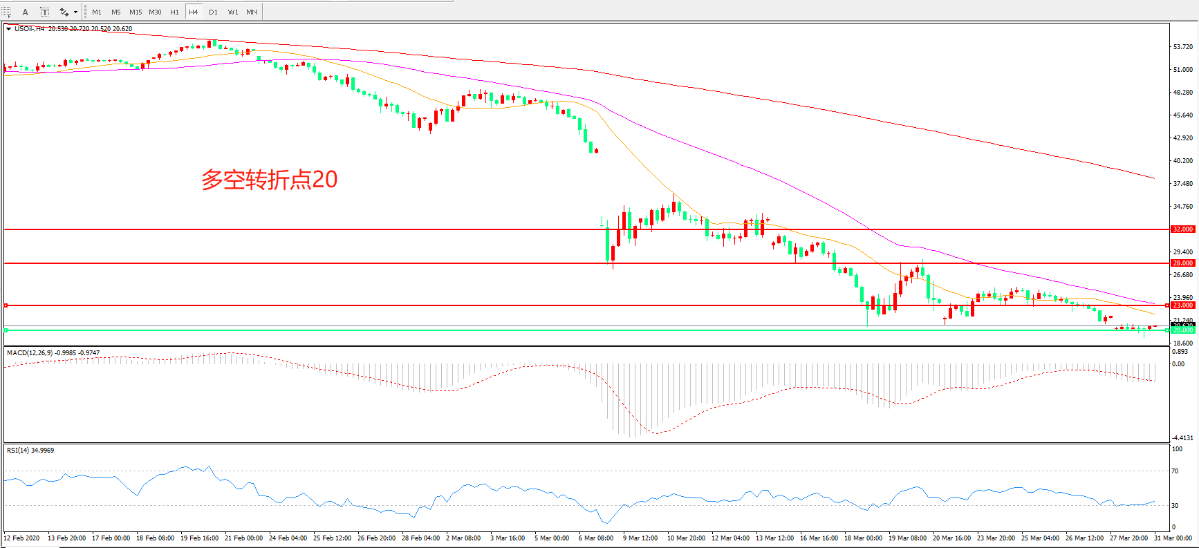 周一(3月30日),有媒体报道称特朗普与普京通话,两人同意就石油市场进行部长级的磋商,就稳定能源市场的重要性达成共识。但尽管如此,油价仍未扭转跌势,美国WTI原油一度跌破20美元/桶,创2002年以来新低,最终收报20.50美元/桶。