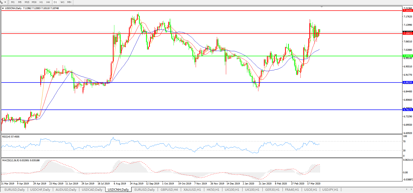 美元兑人民币USDCNH    日线图: