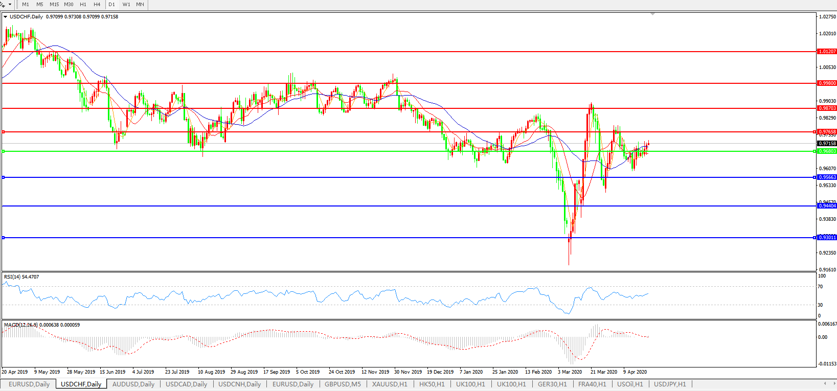 美元兑瑞郎USDCHF 日线图: