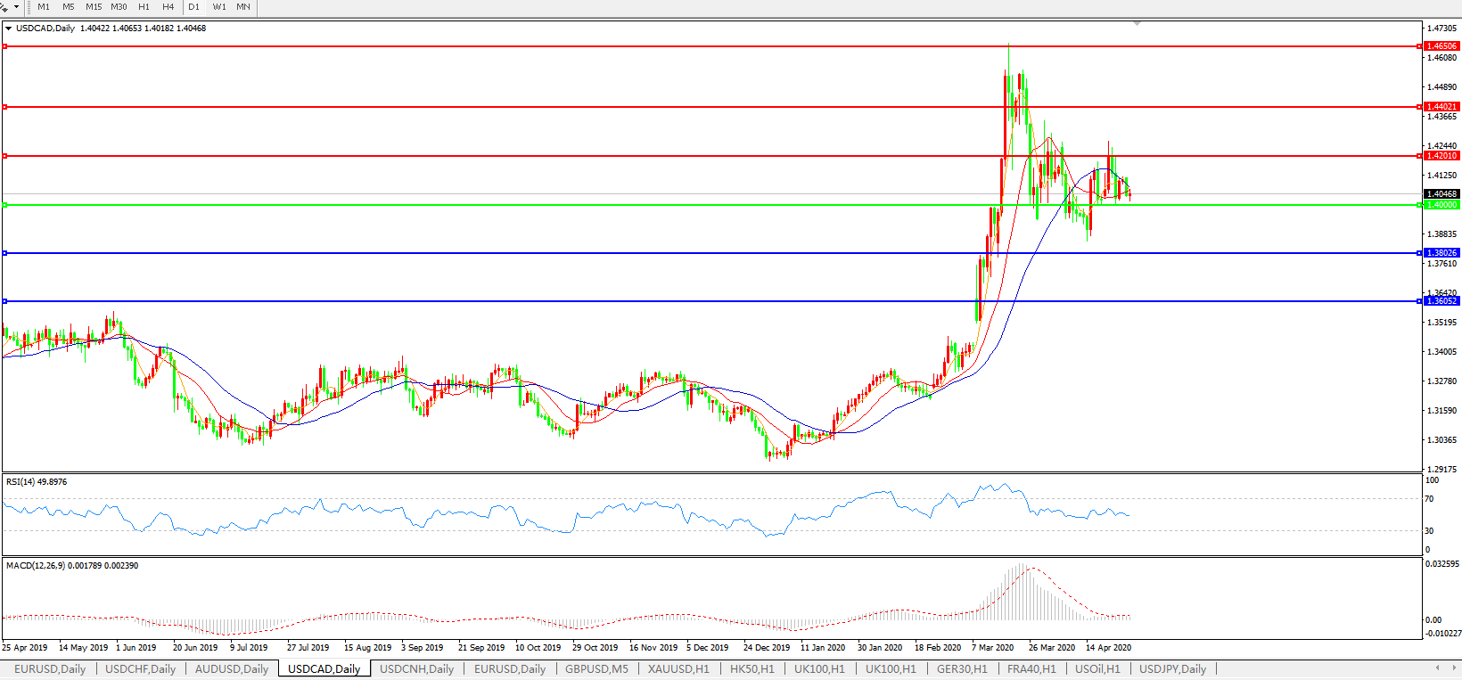 美元兑加元USDCAD 日线图: