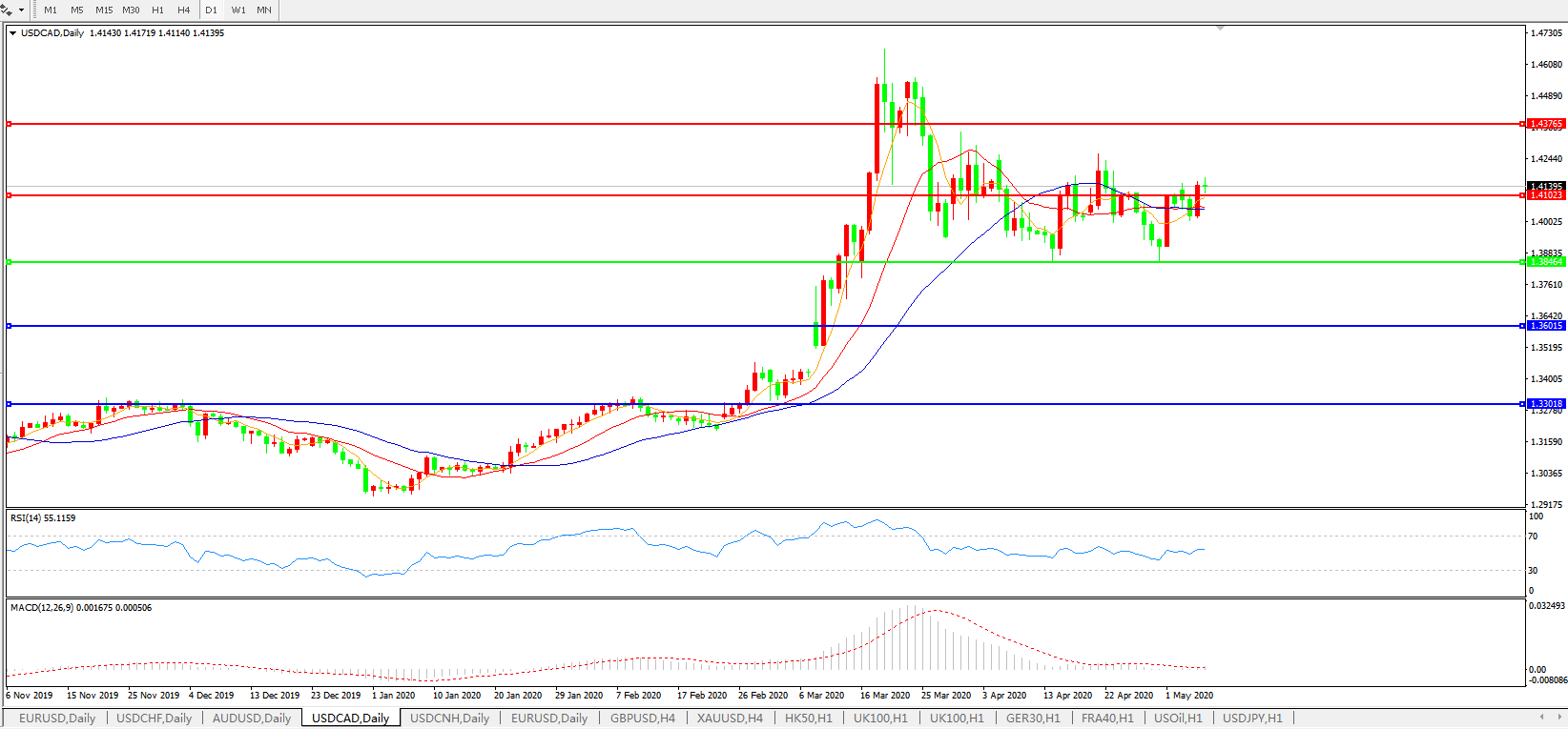 美元兑加元USDCAD    日线图: