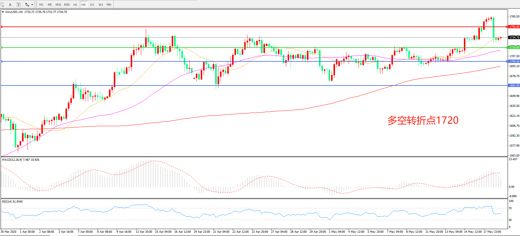 多空转折点:1720.00