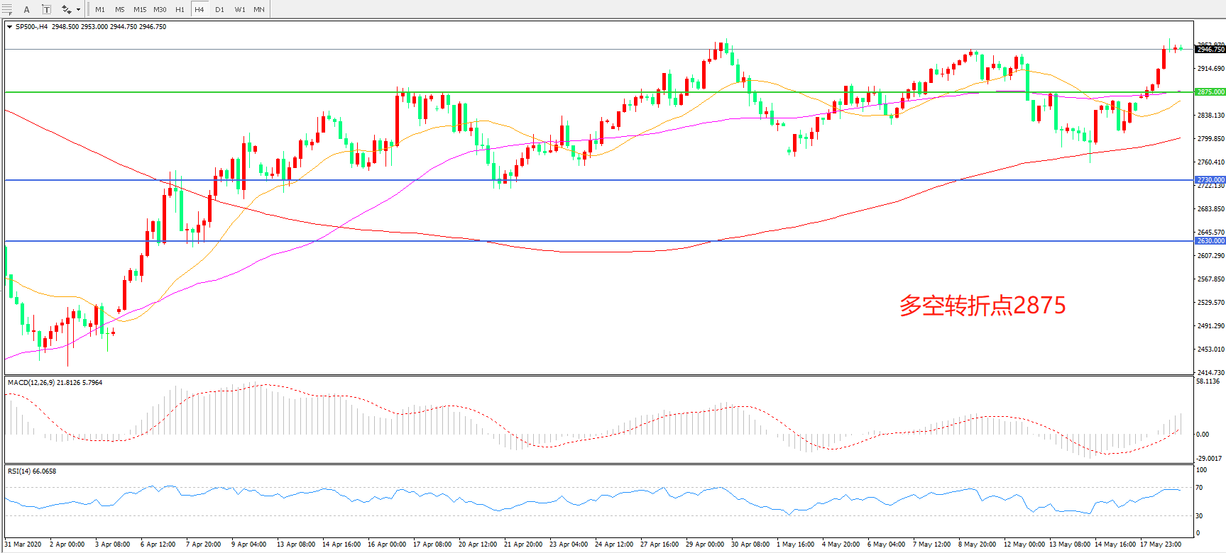 多空转折点:2875.00
