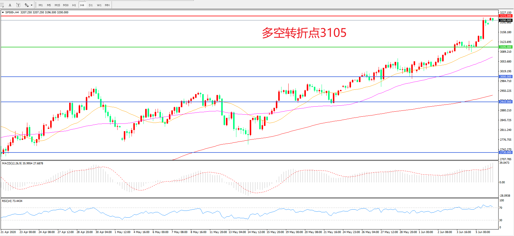 多空转折点:3105.00