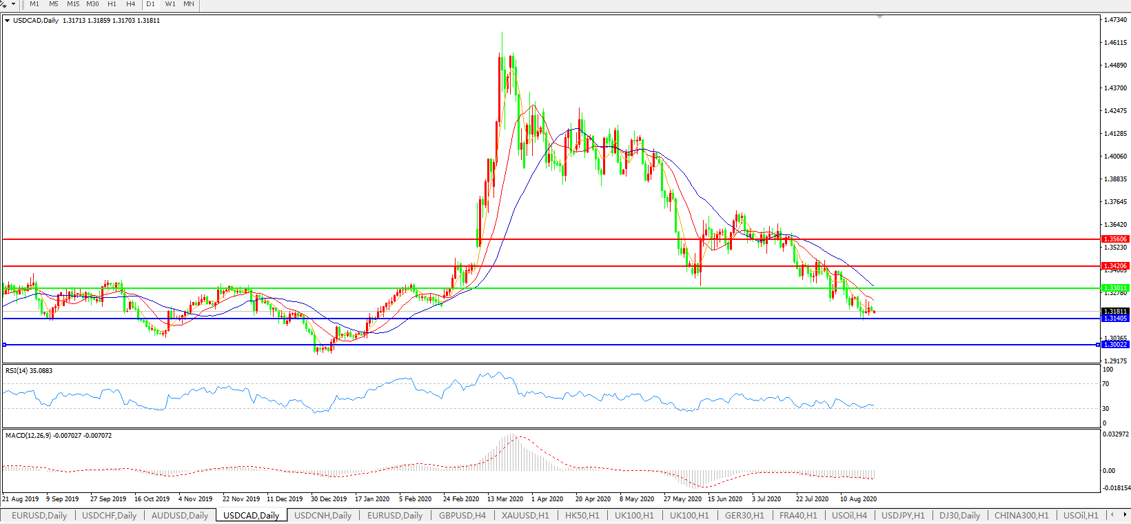 美元兑加元USDCAD    日线图: