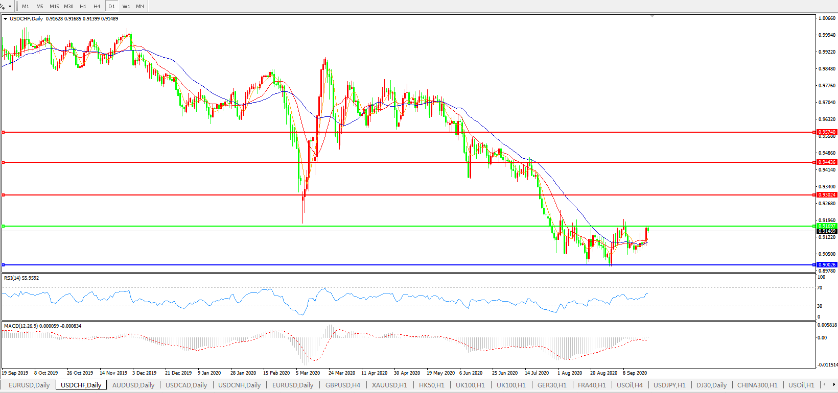 美元兑瑞郎USDCHF    日线图: