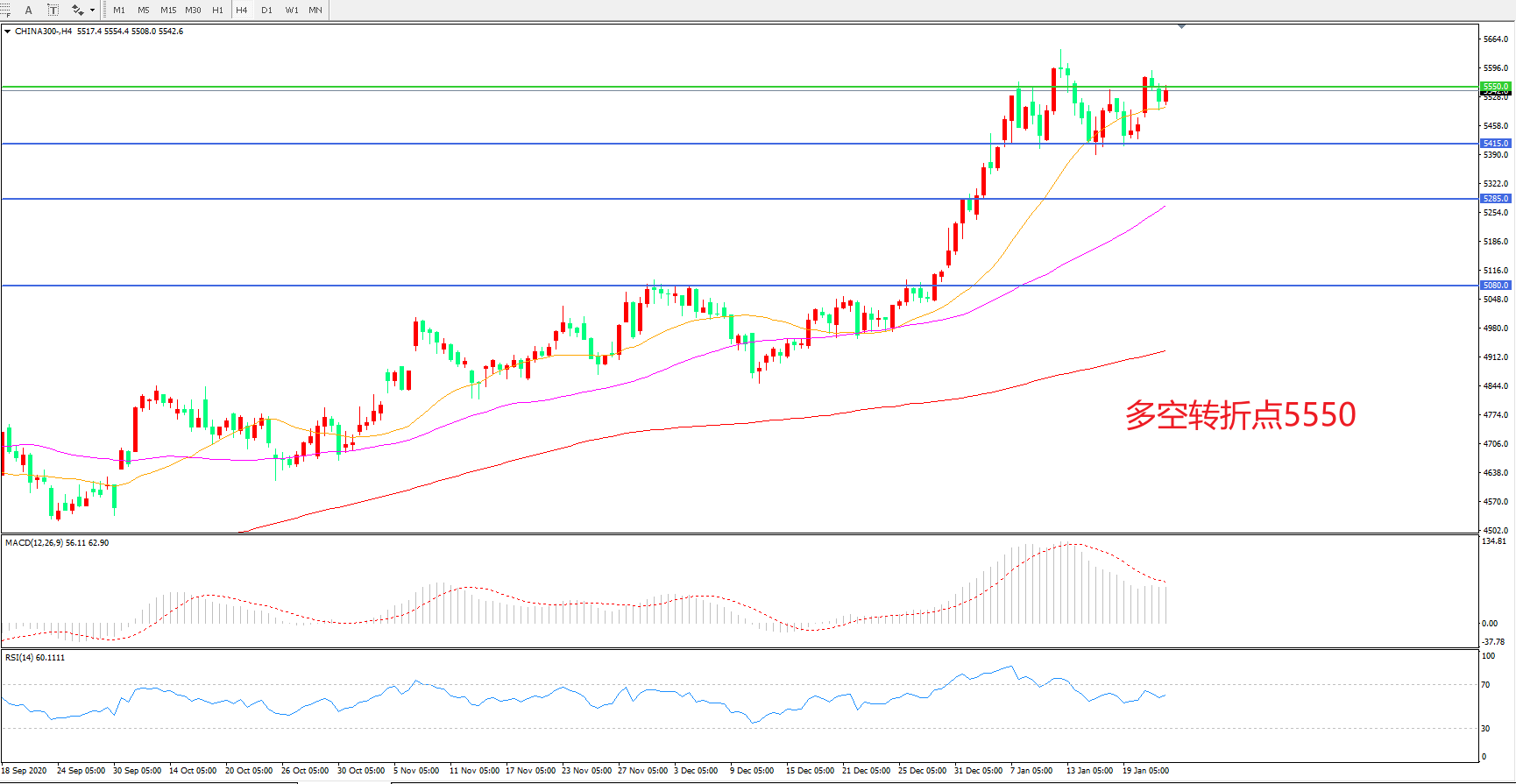 多空转折点:5550.00