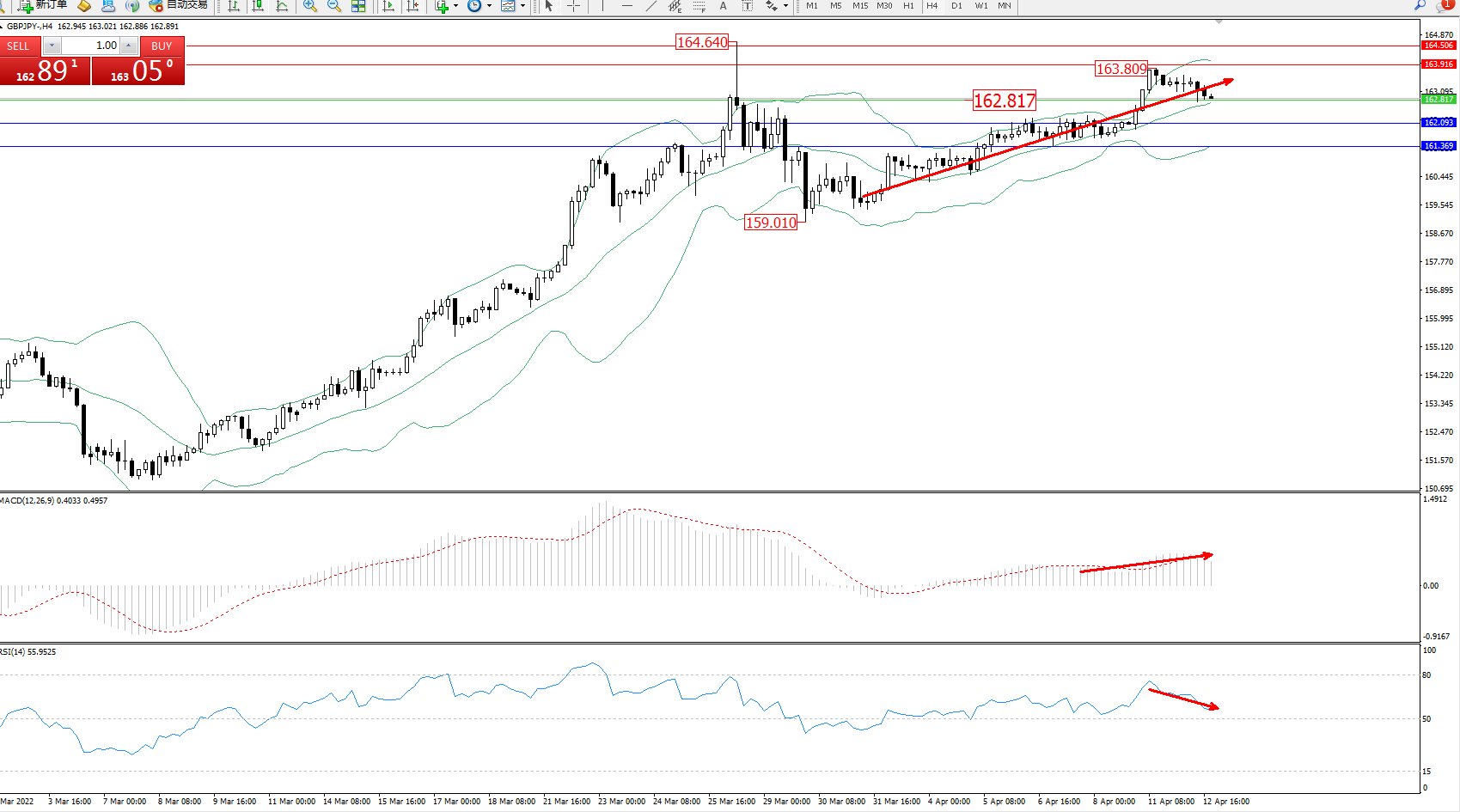 交易策略:162.817上方看涨,目标163.916、164.506