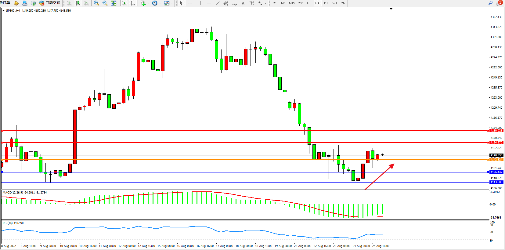 标普SP500——4小时K线图显示: