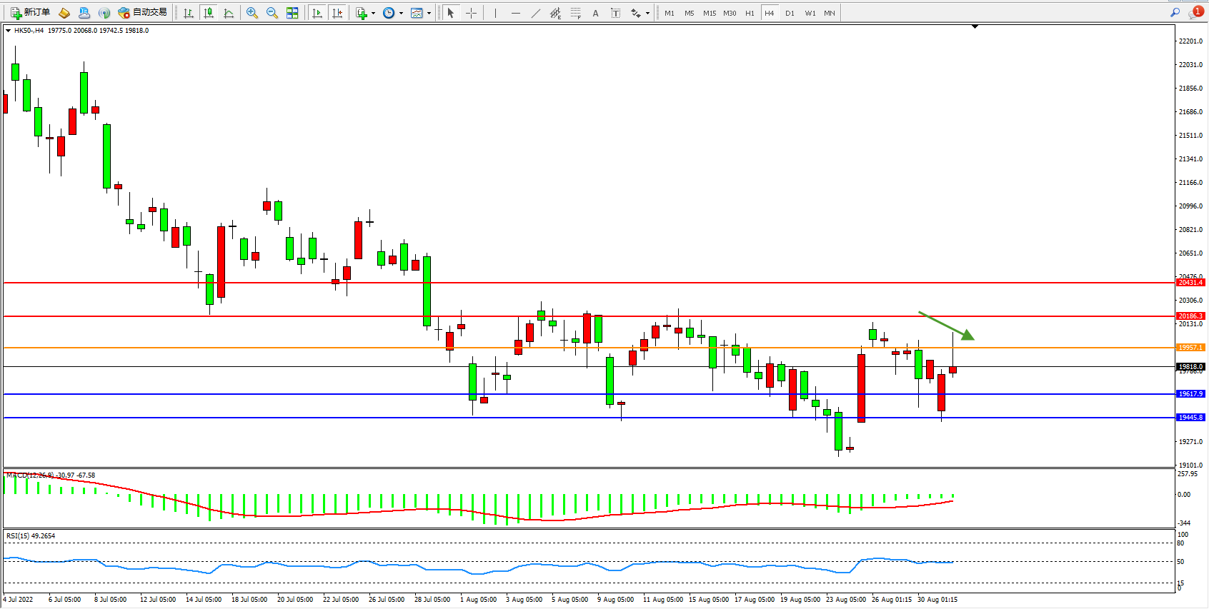 恒指HK50 4小时图