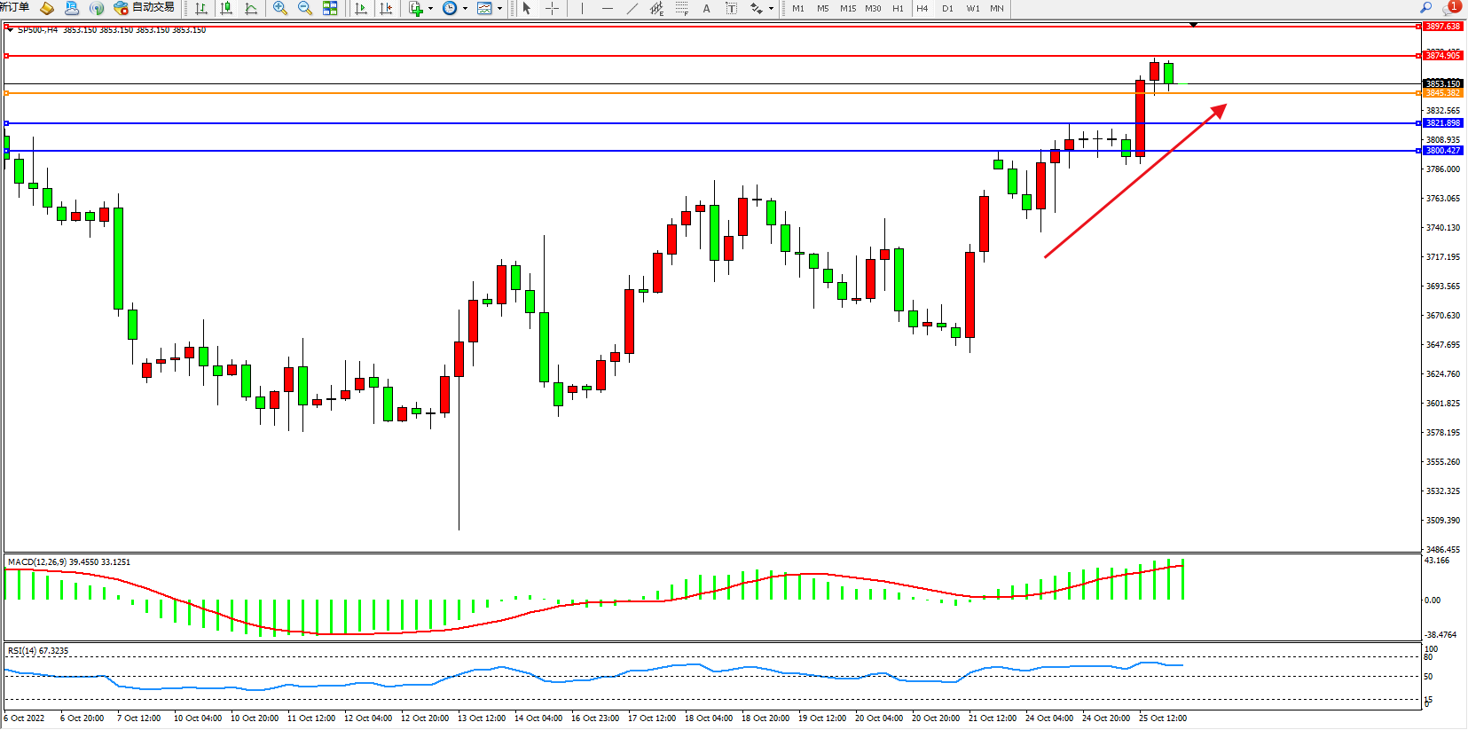 标普SP500——4小时K线图显示: