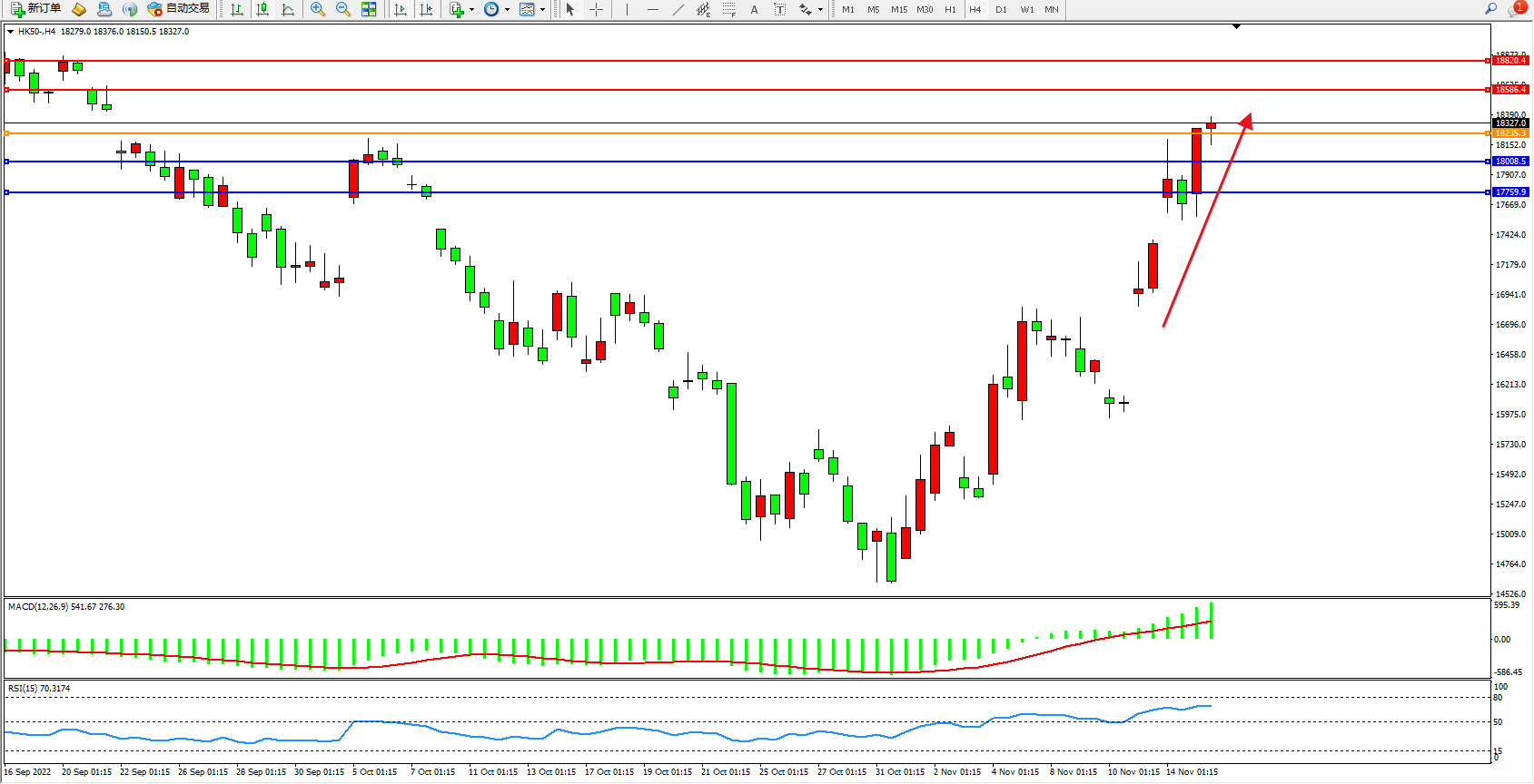 恒指HK50 4小时图