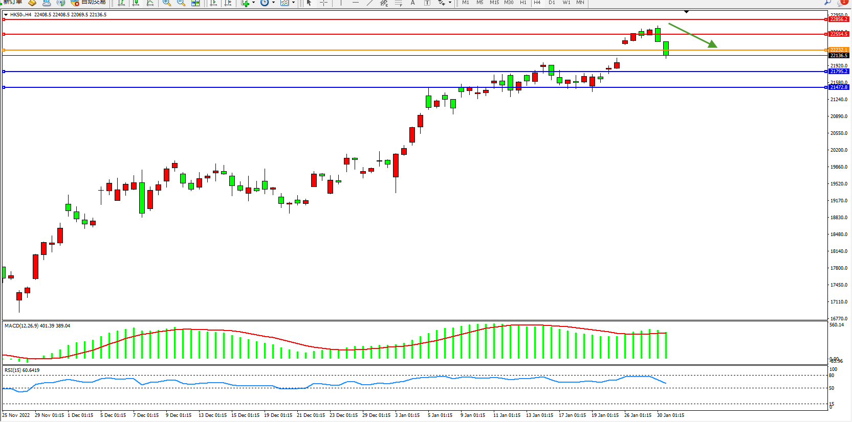 恒指HK50 4小时图
