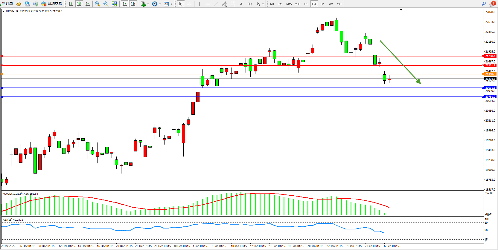 恒指HK50 4小时图