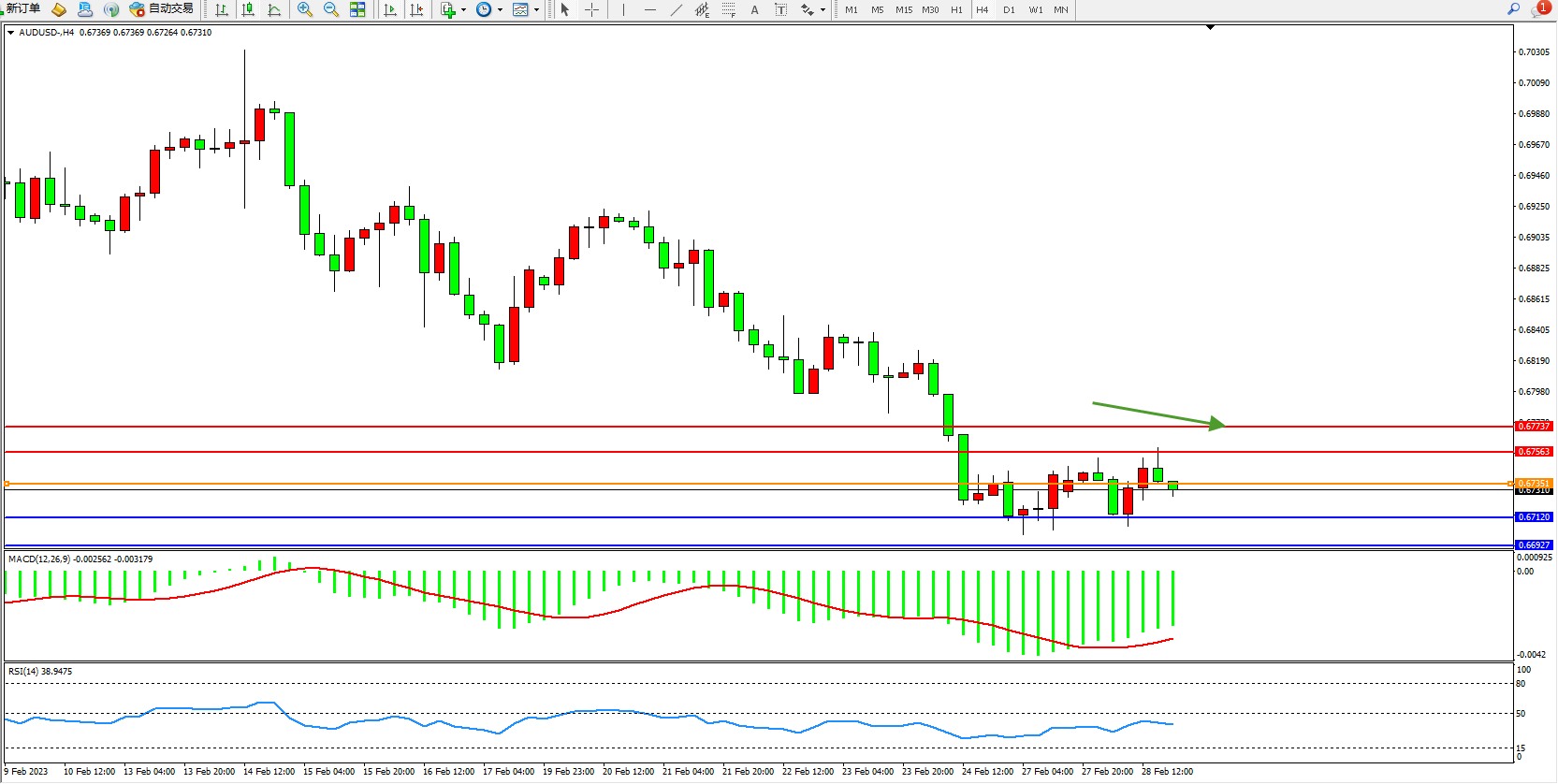 交易策略:0.67351下方看跌,目标0.67120、0.66927