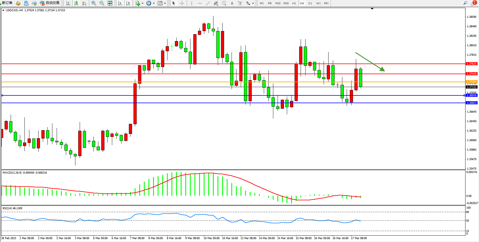 交易策略:1.37254下方看跌,目标1.36976 1.36623