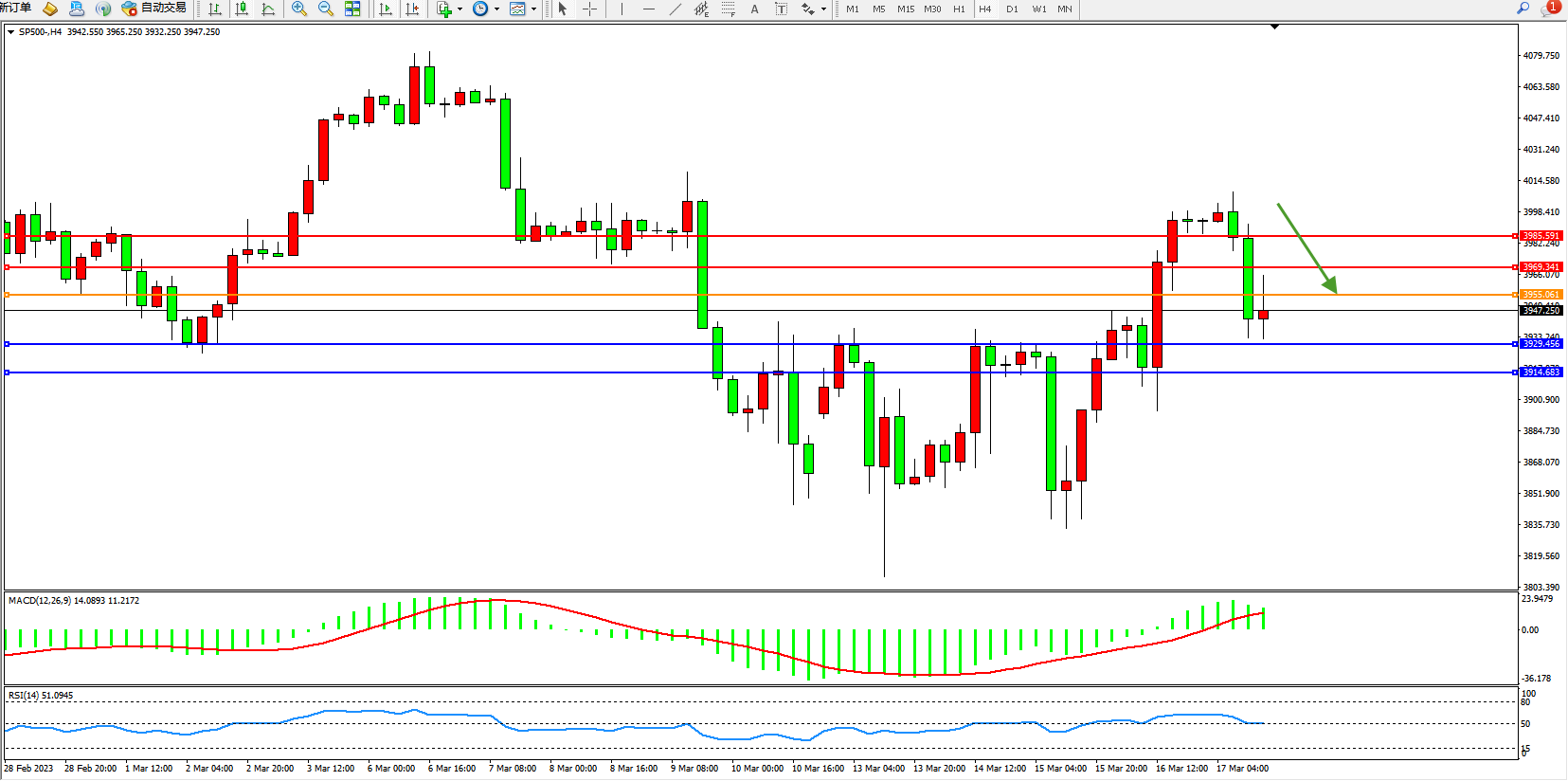 标普SP500——4小时K线图显示: