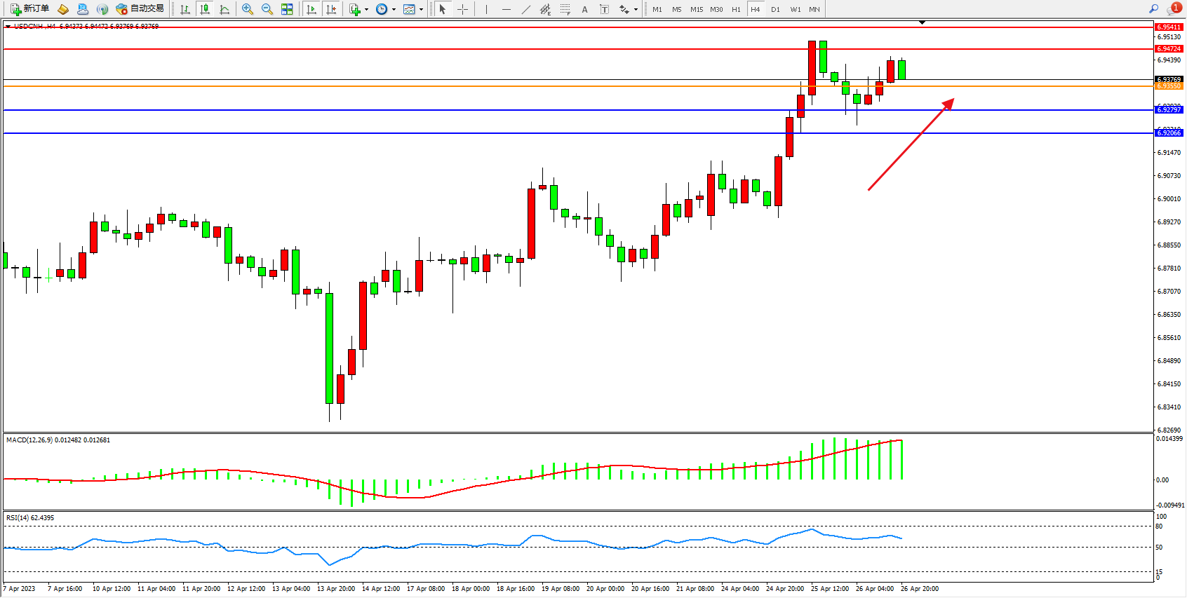 交易策略:6.93550下方看跌,目标6.92797  6.92066