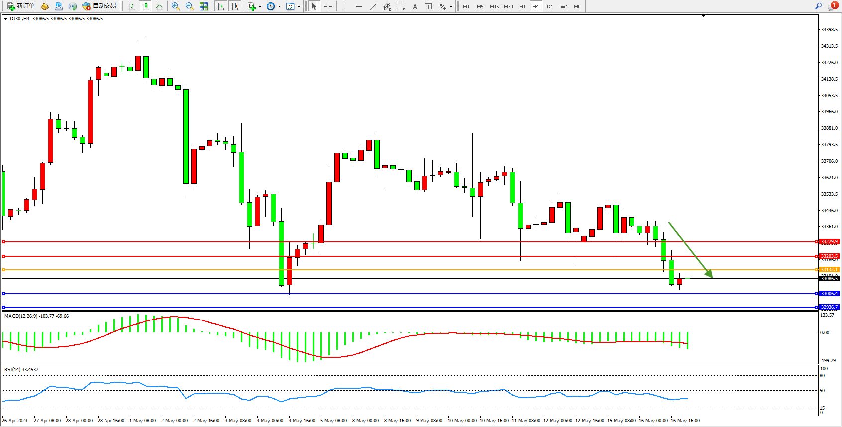 交易策略:33132下方看跌,目标33006  32936
