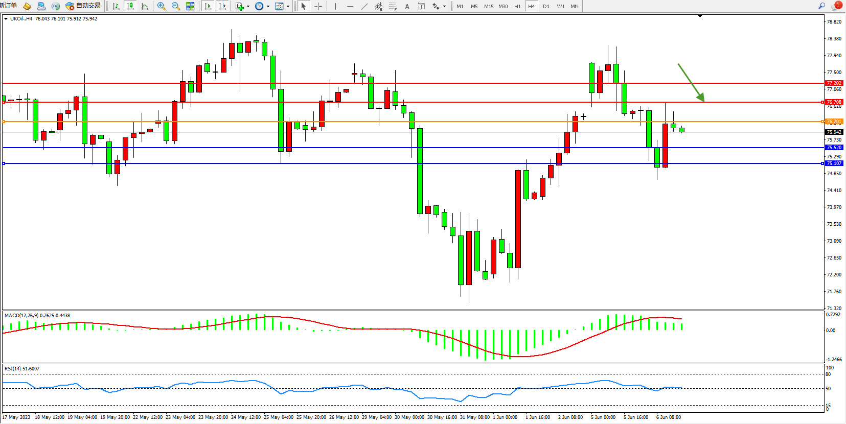 布油UKOil——4小时K线图显示: