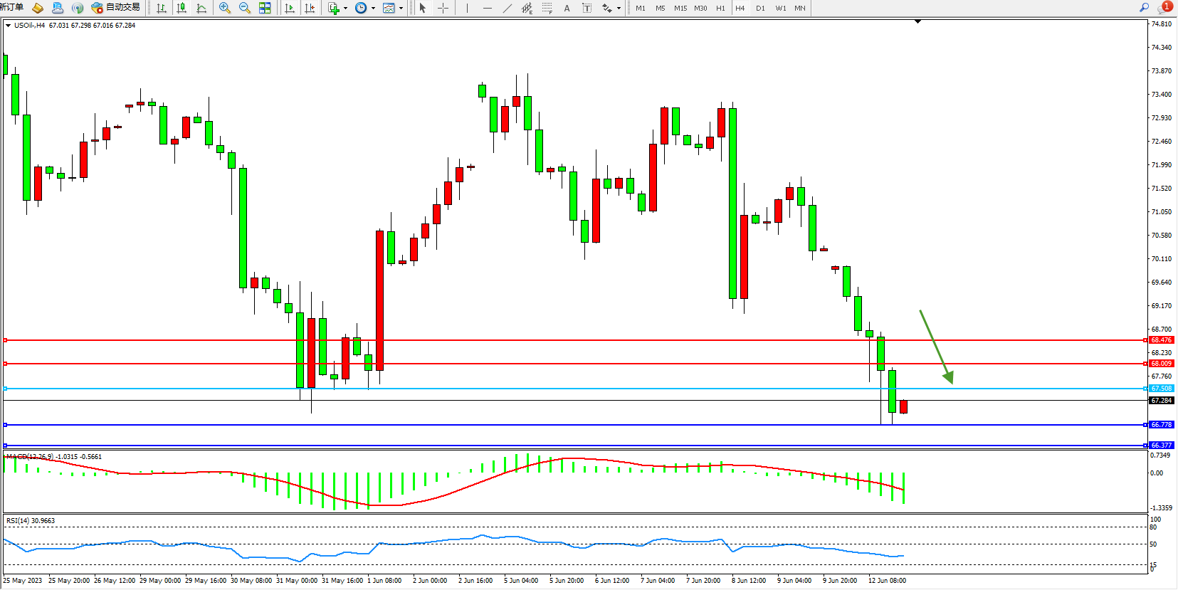 交易策略:67.508下方看跌,目标66.778 66.377