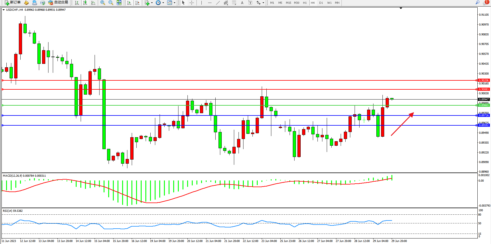 USDCHF:震荡上行 USDCHF  XAUUSD
