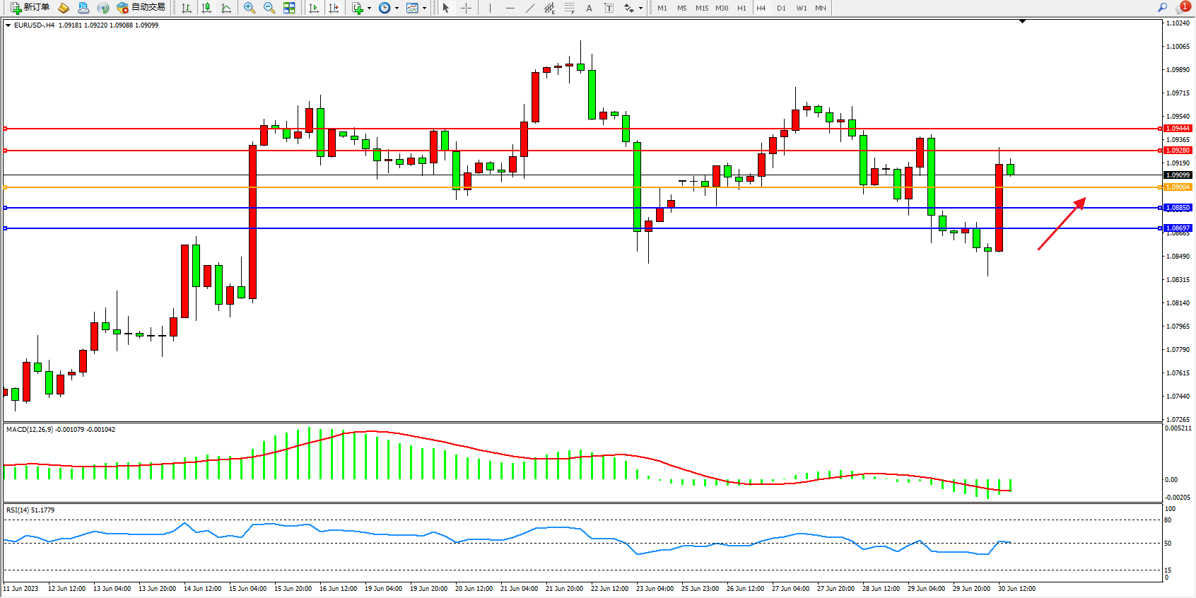 交易策略:1.09004上方看涨,目标1.09280  1.09444
