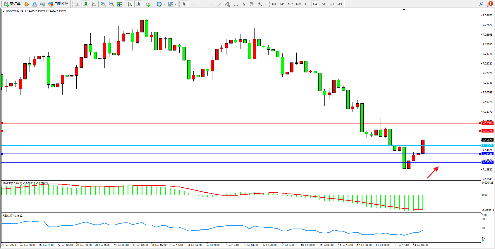 支撑位:7.14435 7.13570