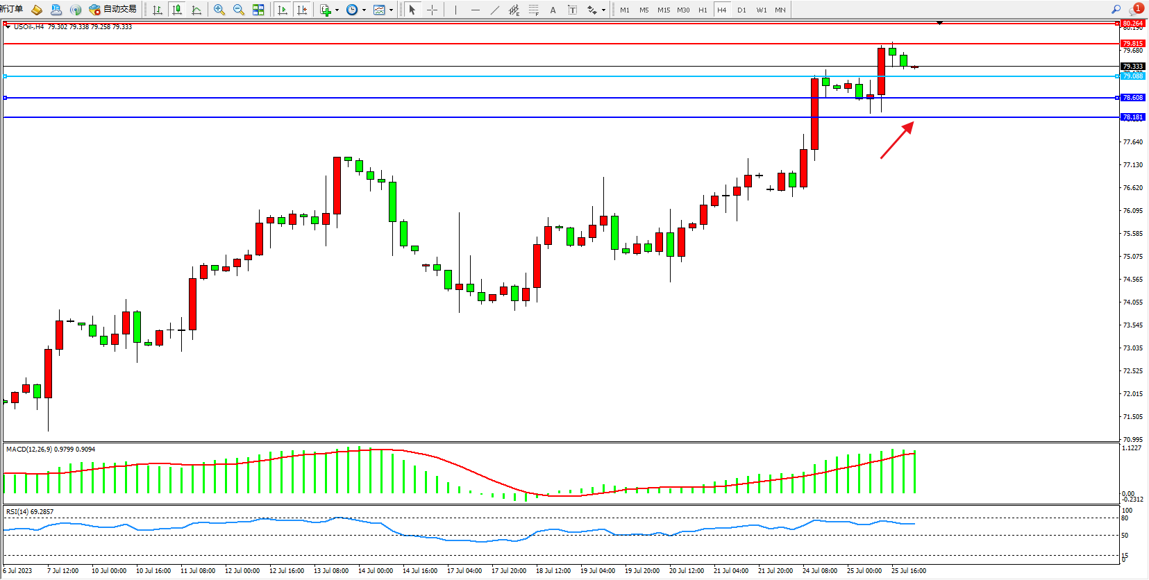 交易策略:79.088上方看涨,目标79.815 80.264