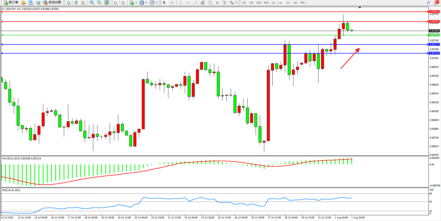 USDCHF:高位上扬 USDCHF  XAUUSD