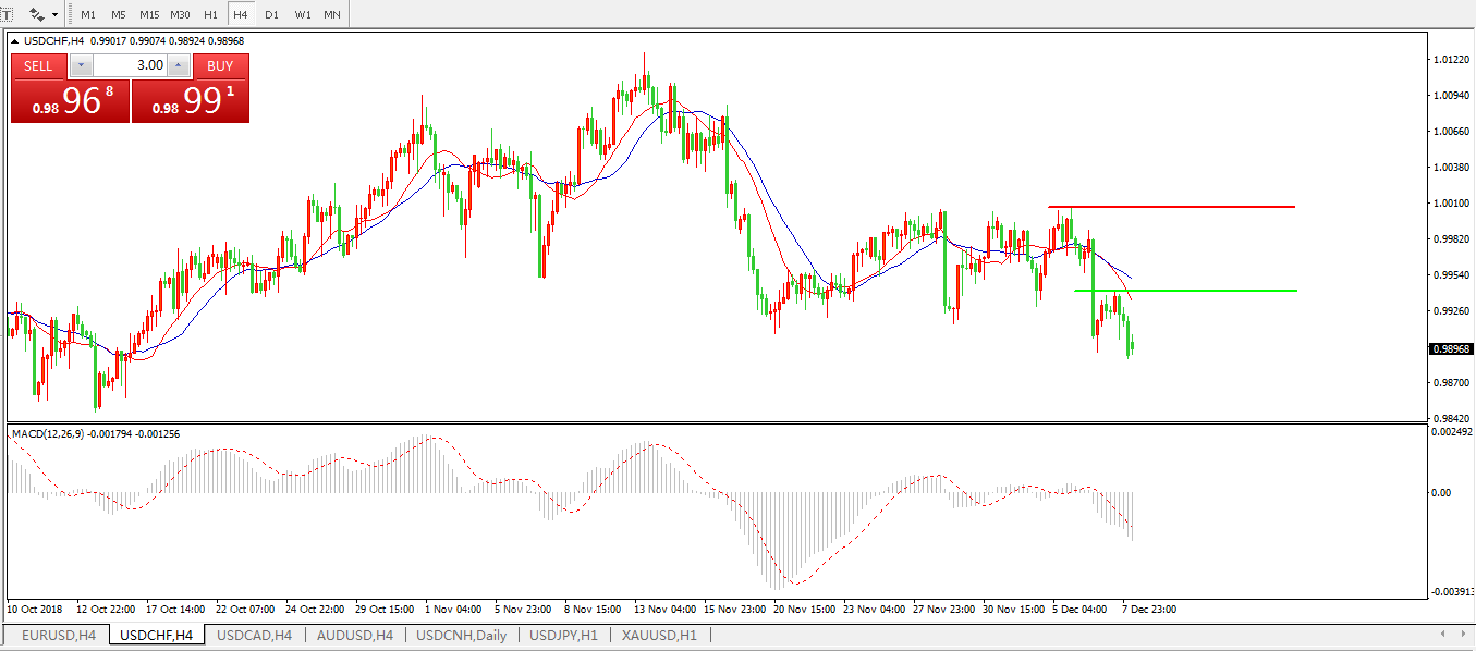 美元兑瑞郎USDCHF4小时图