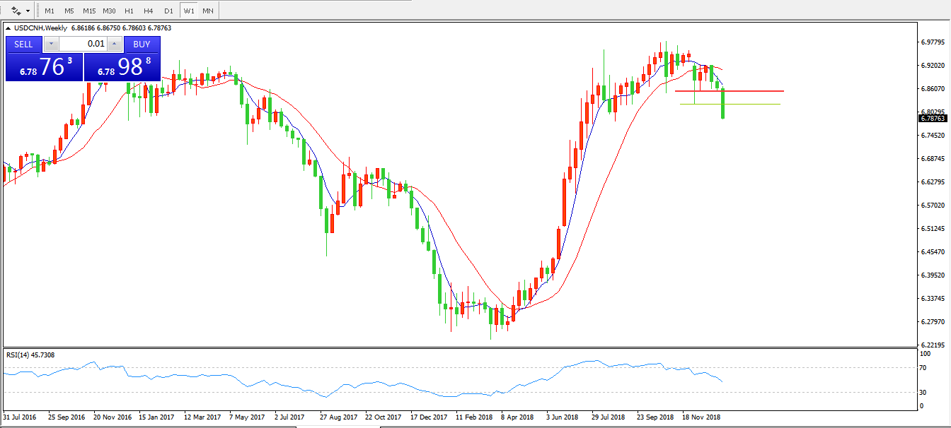 美元兑人民币USDCNH周线图: