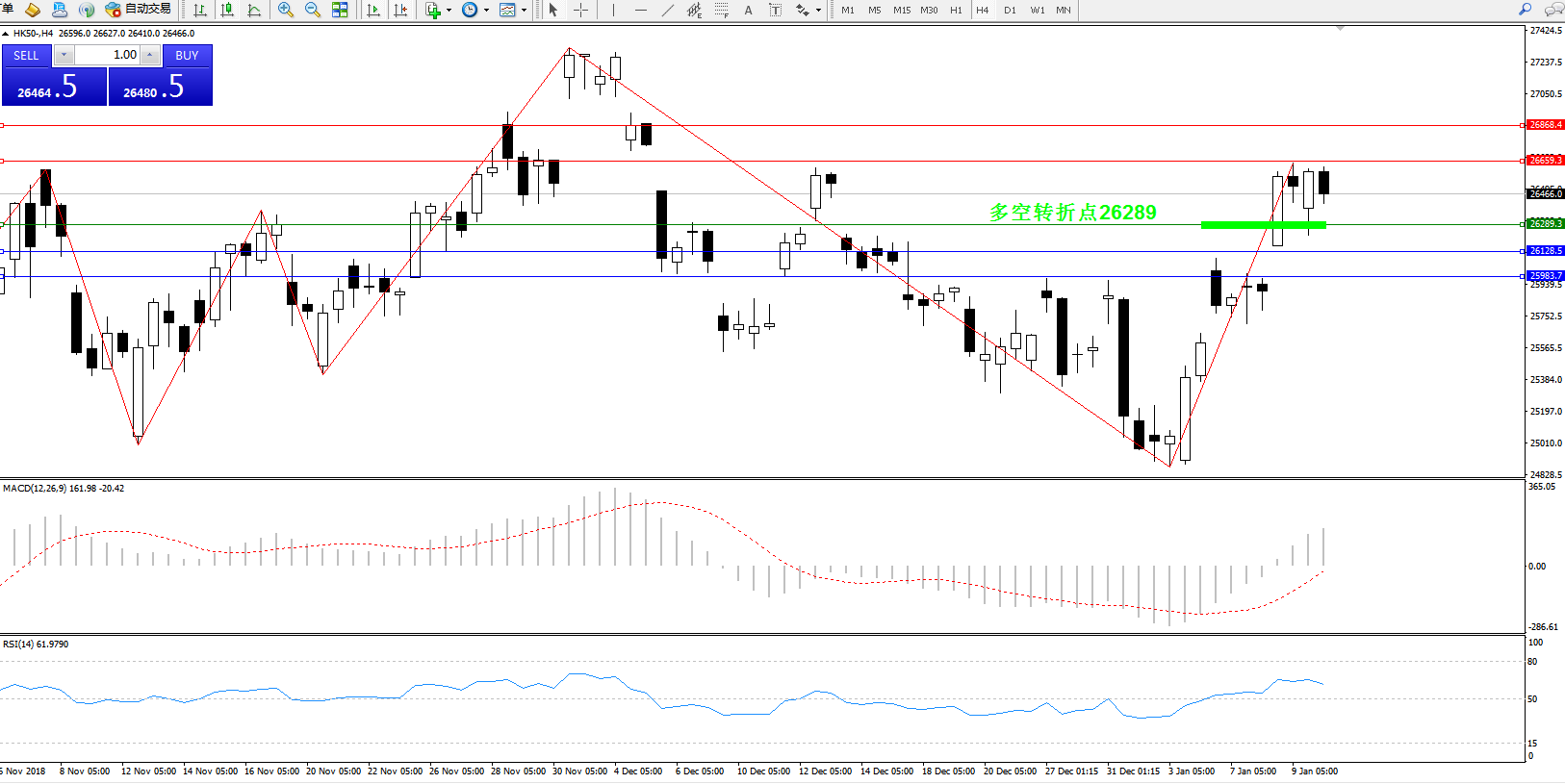 交易策略:26289上方看涨,目标26659、26868