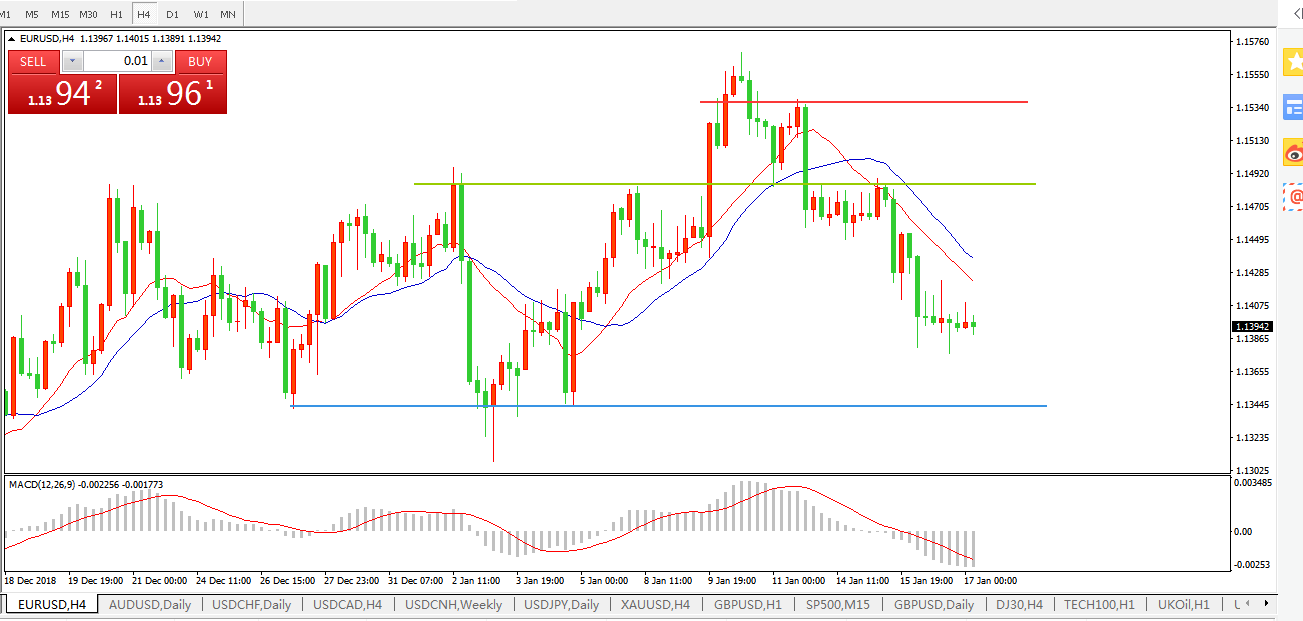 欧元兑美元EURUSD  4小时: